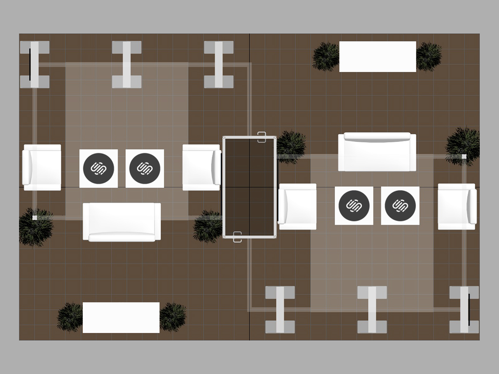 All three incorporate soft seating areas and charging tables for relaxed meetings. The towers serve multiple purposes. The height offers elevated brand visibility on the show floor and provides additional storage in the booth for promotional products, samples, literature, or personal items.