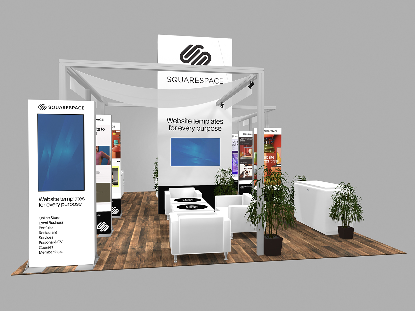 Island exhibits are displays bordering 3-4 aisles, with the smallest starting at 20’ x 20’. Inline exhibits, by contrast, typically border 1 or 2 aisles and are usually 10’ x 10’ or 10’ x 20’.
