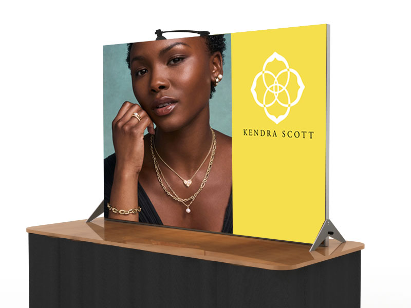 Any good table top display should be lightweight, attractive, and easy-to-assemble. SEGUE table top designs do all that and more. The SEGUE engineered aluminum frame is durable and assembles without tools. The vibrant silicone edge fabric graphics fit into a simple groove, making set-up error free every time.