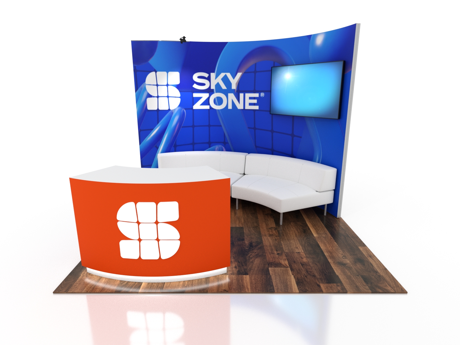In a world of garish colors and impractical design, understated elegance stands apart in its ability to convey luxury. These exhibits transform simple curves into an inviting upscale setting with functional multimedia options. They include large monitor options, a seating area, and presentation/lounge areas. The reception counter offers ample storage and large graphics in a sweeping design that invites tradeshow attendees into your booth. Best of all, as your trade show schedule changes, the designs expand or shrink depending on your needs. Best of all with Gravitee Modular frames, assembly is fast and effortless, saving you time and money during installation and dismantle.