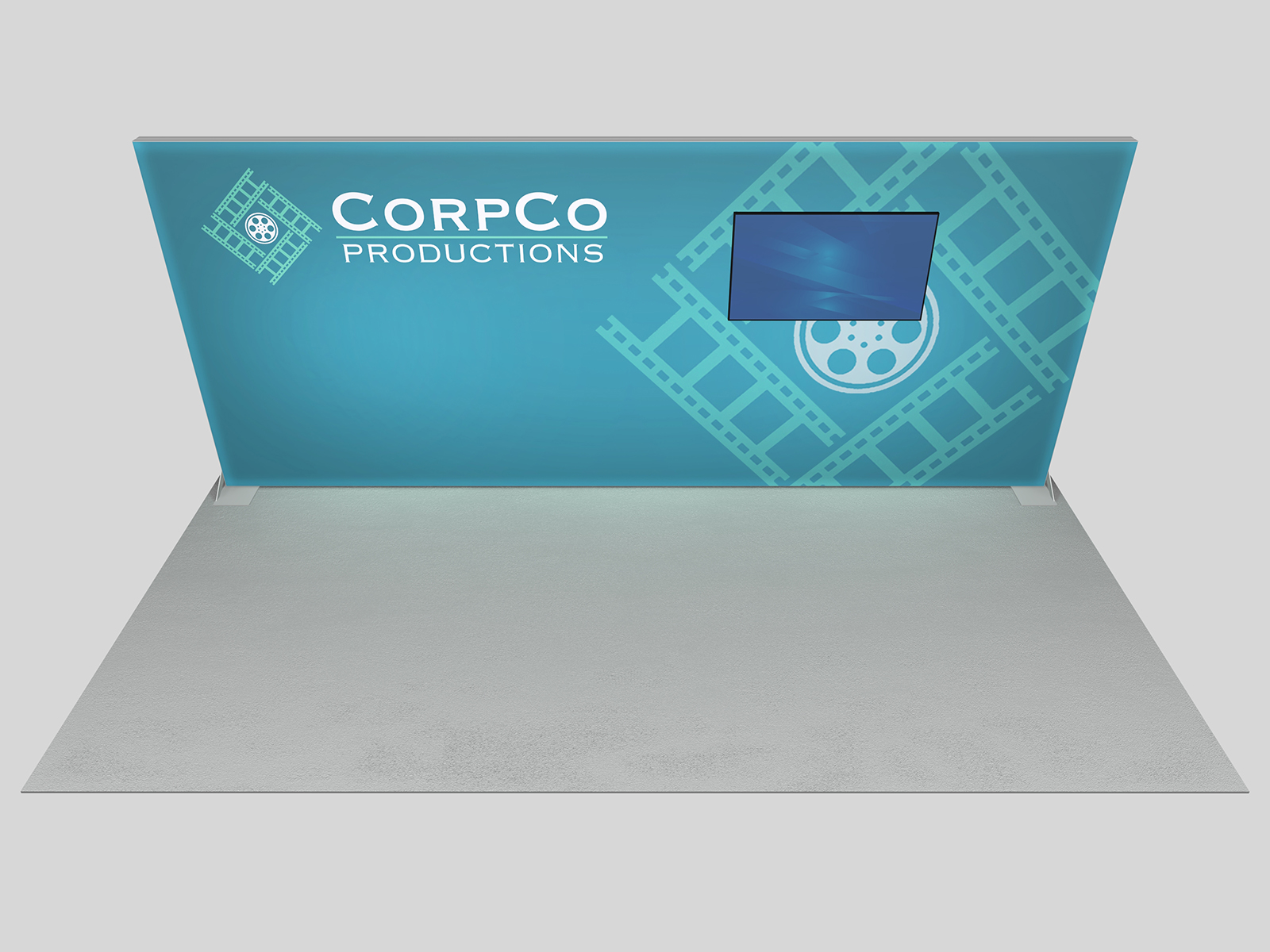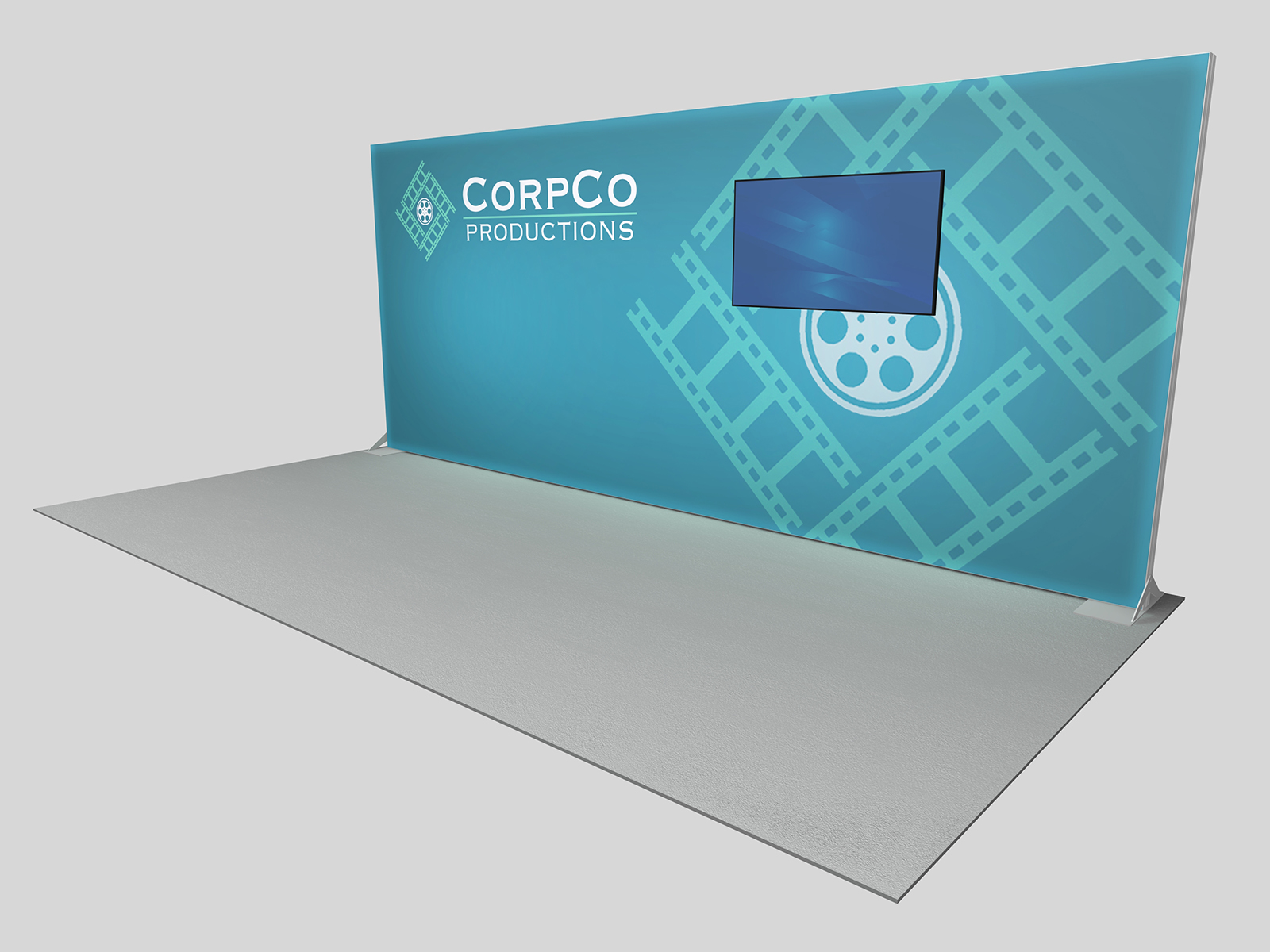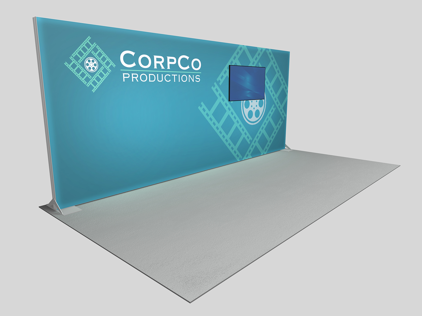 Rental trade show exhibits have graduated to the BIG TIME! For example, the RE-2163 is a big, bold exhibits constructed with an SEG engineered aluminum, silver anodized frame and brilliant LED lights. The exceptionally strong, yet lightweight frame, supports up to a 50 in. LED monitor. 10 ft. and 20 ft. lightbox versions are available. You won't believe your eyes the first time you see the high-resolution backlit fabric graphic.