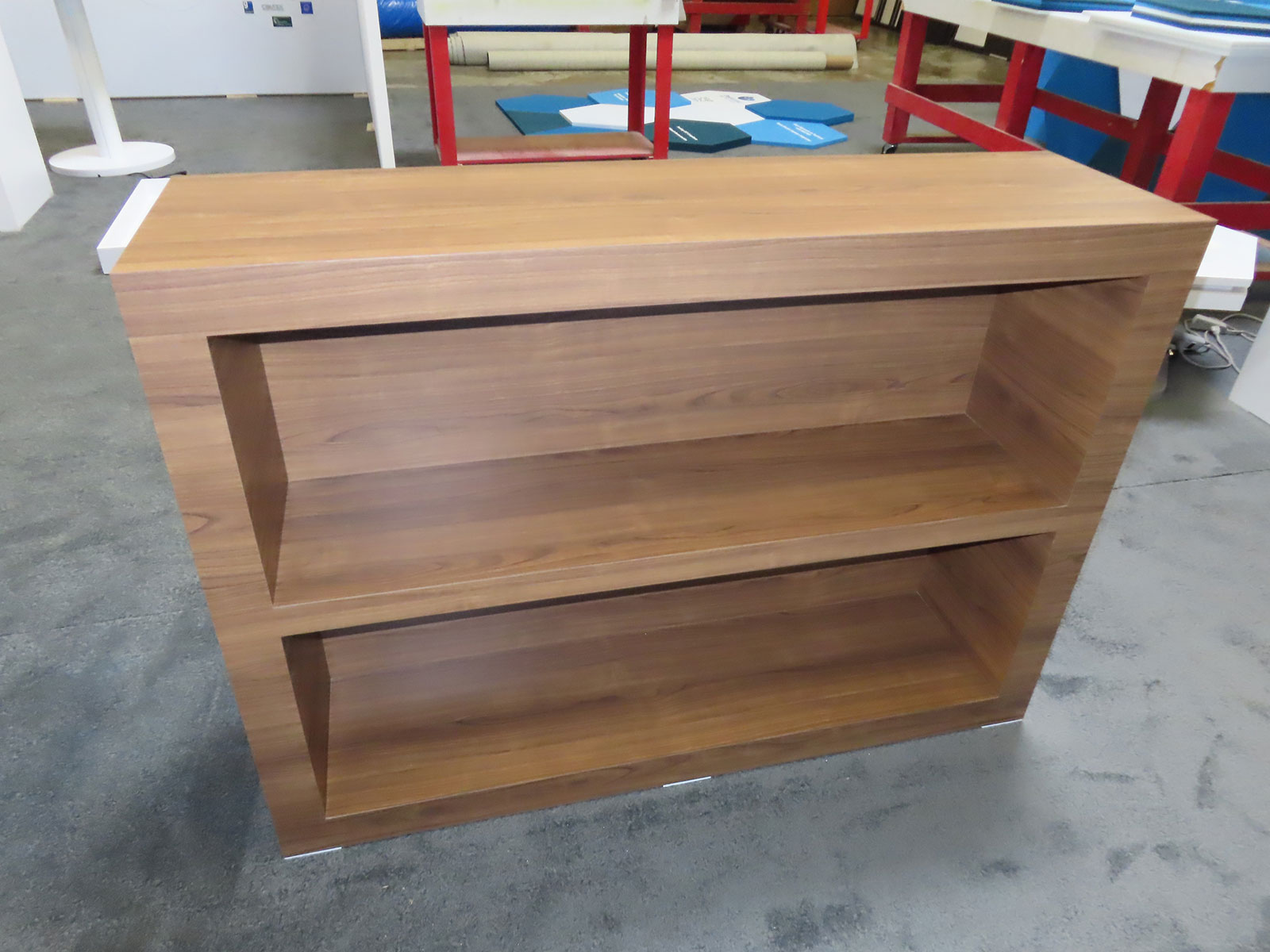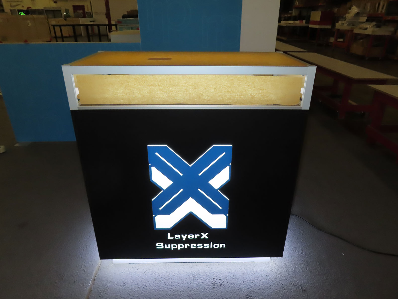 Custom Product Display Counter with Backlit Logo and LED Accent Lights, Locking Storage, and Plex Display Case Custom Product Display Counter with Backlit Logo and LED Accent Lights, Locking Storage, and Plex Display Case