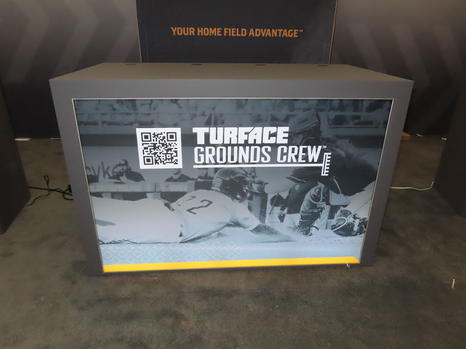 Custom Inline Exhibit with SuperNova Backlit Lightboxes, (4) Product Shelves, Storage Closet, Fabric and Direct Print Graphics, Reception Counter w/ Open Storage, and Counter w/ Locking Storage and Wireless Charging Pads Custom Inline Exhibit with SuperNova Backlit Lightboxes -- View 2 Custom Inline Exhibit with SuperNova Backlit Lightboxes -- View 3 Custom Inline Exhibit with SuperNova Backlit Lightboxes -- View 4 Custom Inline Exhibit with SuperNova Backlit Lightboxes -- View 5 Custom Inline Exhibit with SuperNova Backlit Lightboxes -- View 6