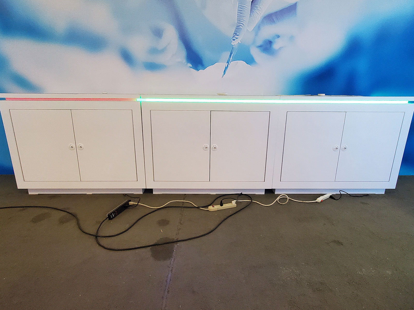 Laminate Counters with Graphics, LED Accent Lights, and Locking