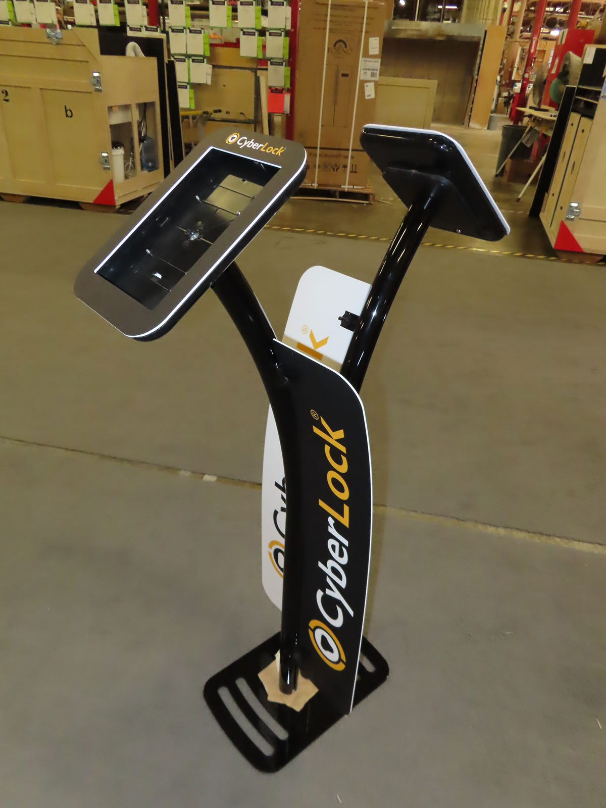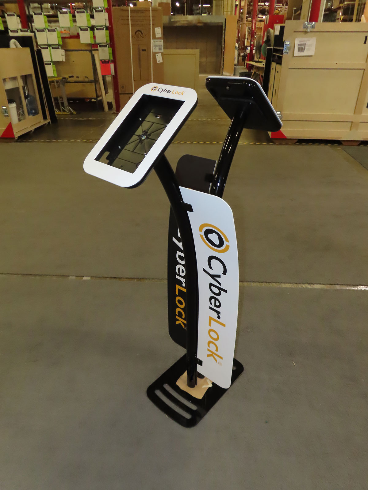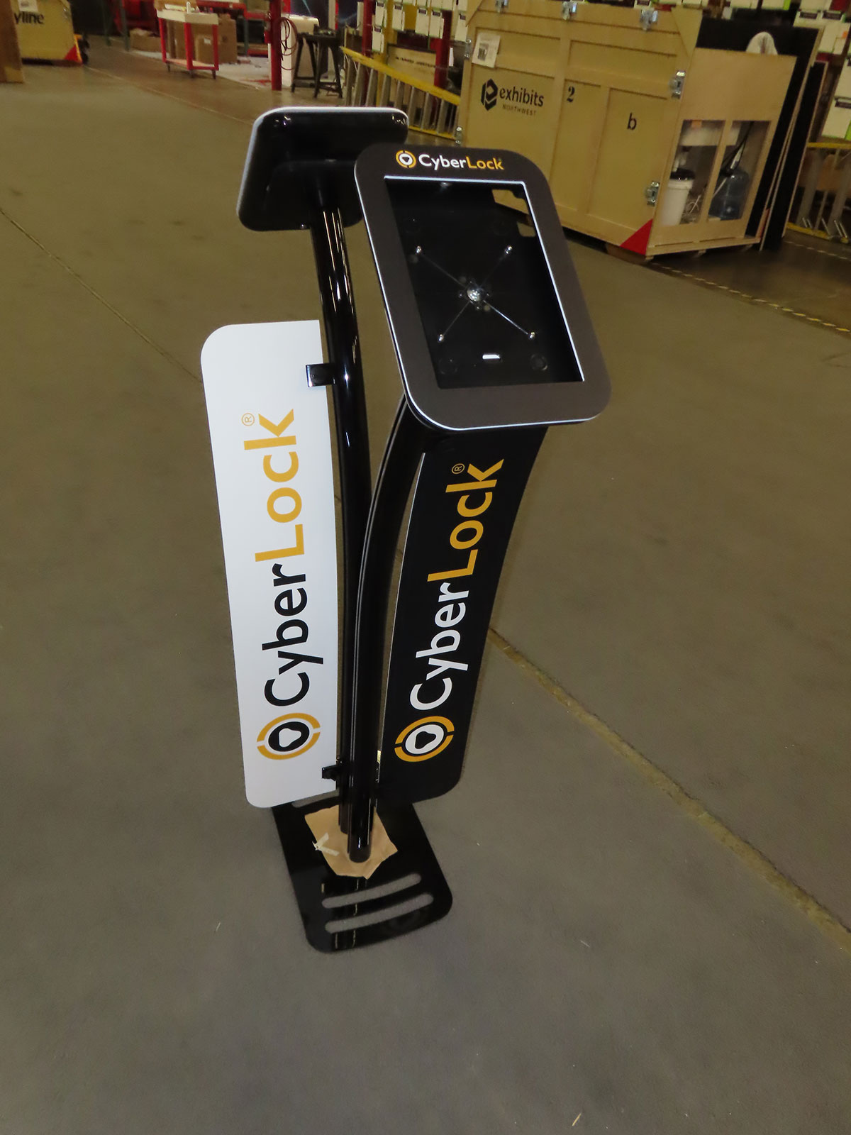 iPad Stand with Locking Clamshells, Black Powder-coat Finish, and