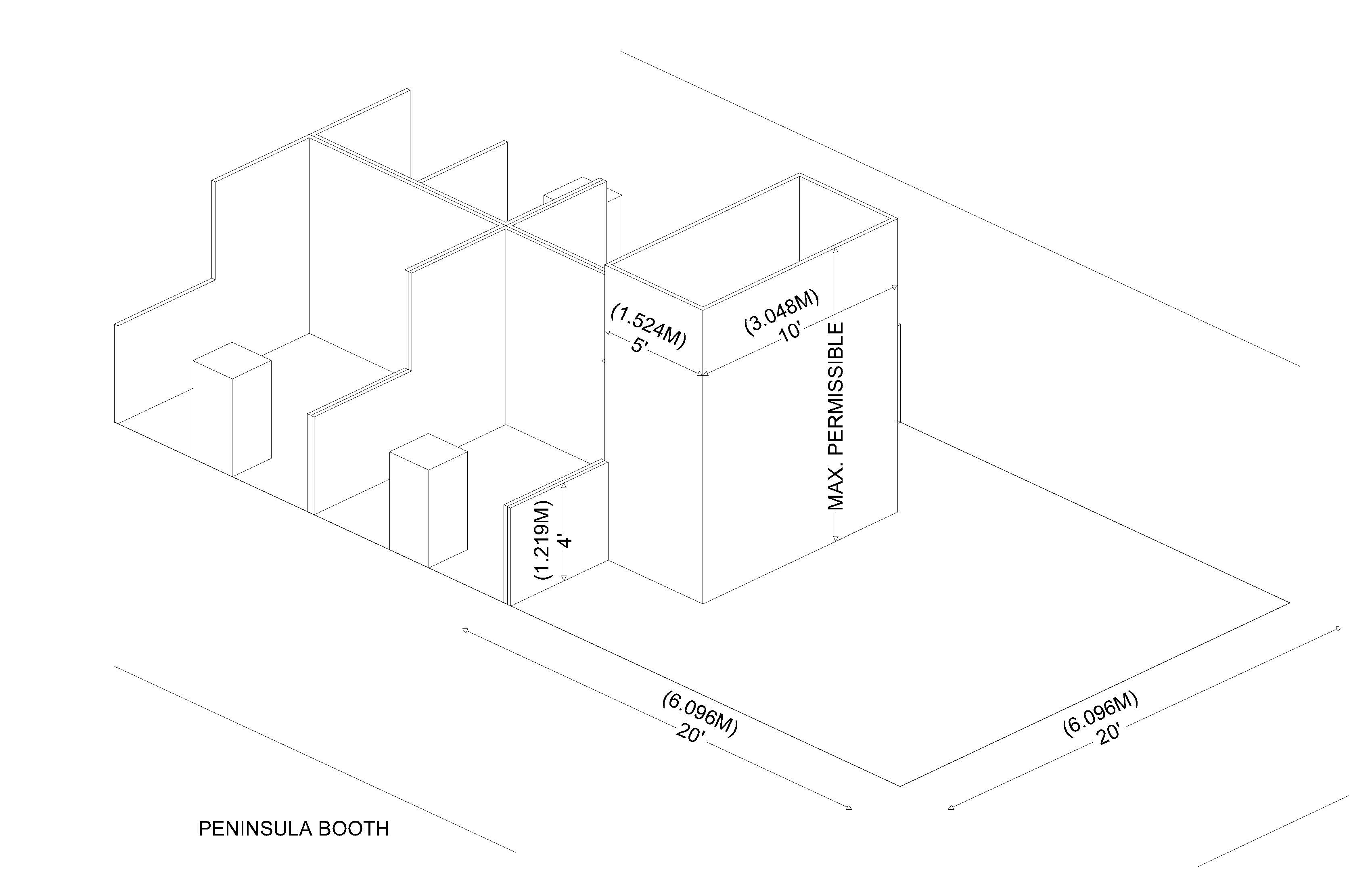 Where two (2) peninsula booths share a common back wall ("split Island"), the maximum height may be 20 ft. in all areas of the booth, including the back wall (same as Island Booth rules, below).